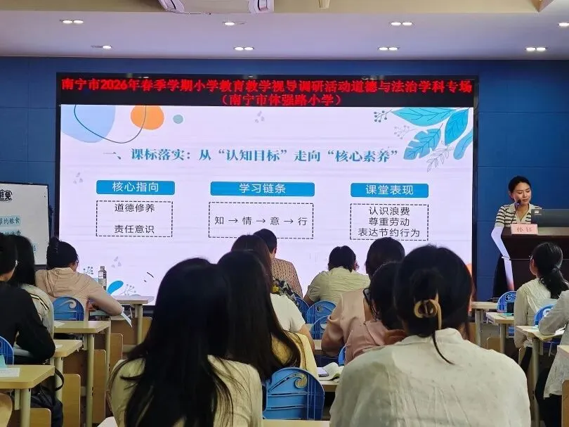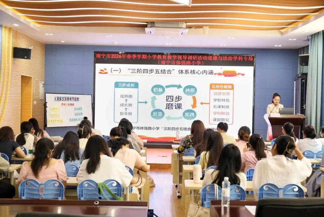 南宁市体强路小学承接道德与法治、劳动、美术、体育四门学科研讨会。