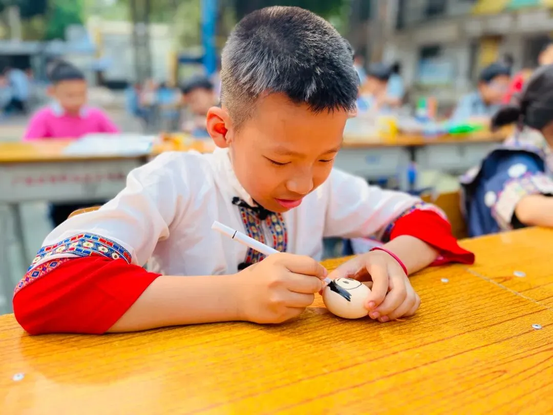 "壮乡小市集"成为活动一大亮点。由各班级同学们担任"小掌柜"的各个摊位前人头攒动,处处可见他们热情推介的身影。这些充满创意的商品,有的是同学们亲手制作的民族手工艺品,如精美的绣球、彩蛋挂饰;有的是在家长指导下准备的传统美食,如五色糯米饭、艾叶糍粑;还有同学们闲置的图书、玩具等。