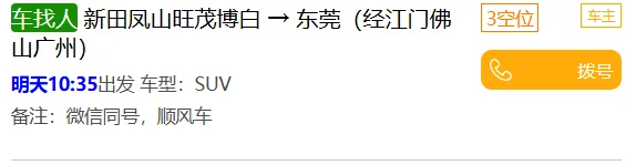 你不用去挤火车、客车,降低接触风险,而且只要你和车主(乘客)商量好,就能实现“家门口上车”,从此告别拥挤和不卫生;日常出行,临时出行很着急,有了博白腾飞拼车网,你再也不用买票、取票、乘车来回麻烦,看到拼车信息,即可高枕无忧出行啦;不管是开车,还是乘车,全部是咱们同城人,你可以尽情结交朋友。
