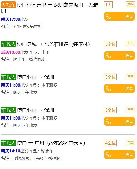 【4月14日】博白往返南宁、广州、深圳、珠海等拼车最新信息!