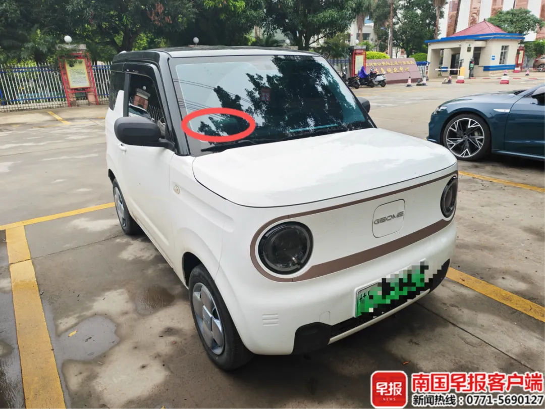 黄先生车辆前挡风玻璃因被小石头击中出现破损。受访者供图