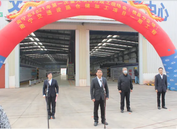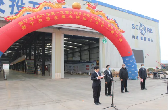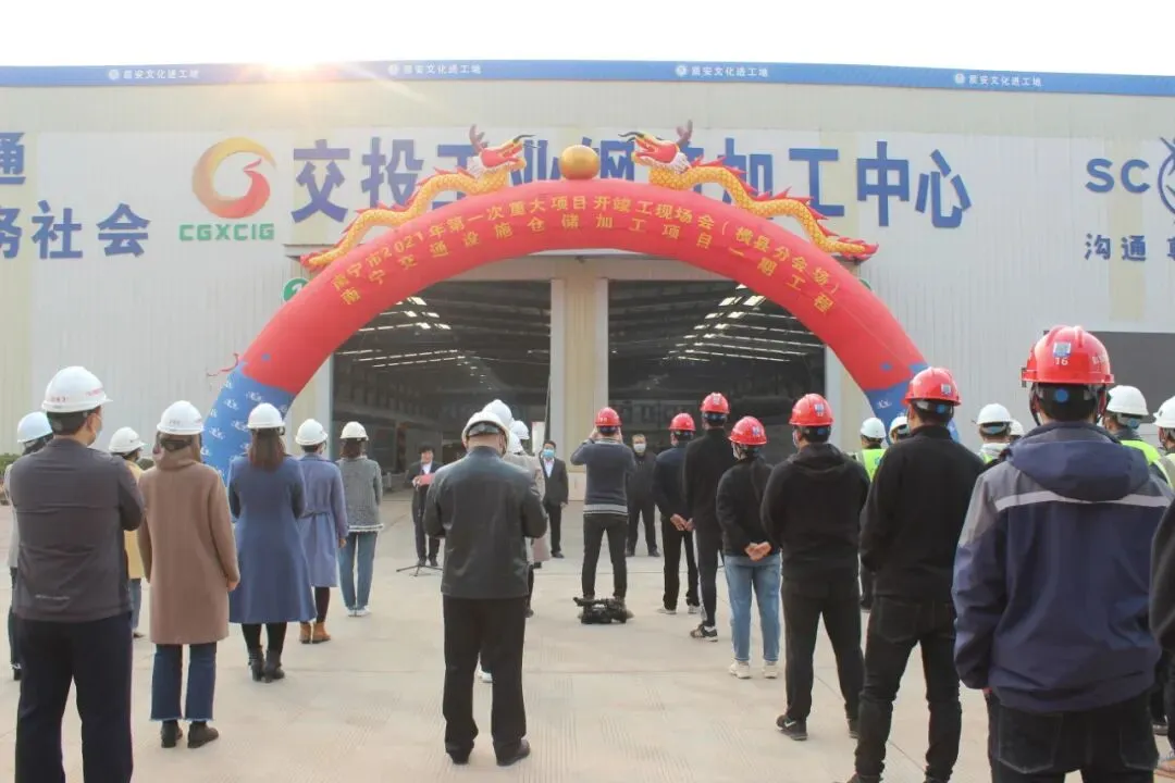 1月22日,根据南宁市2021年第一次重大项目开竣工现场会的统一安排,南宁交通设施仓储加工项目一期工程竣工现场会在南宁六景工业园区举行。现场会由南宁六景工业园区管委会常务副主任、六景镇镇长肖彩主持,广西交投建筑工业化有限公司董事长黄祖达介绍项目情况,南宁六景工业园区党工委专职副书记、六景镇党委书记农烈宣布项目竣工,项目业主、设计、参建、监理单位及六景镇干部代表约50人参加了开工仪式。