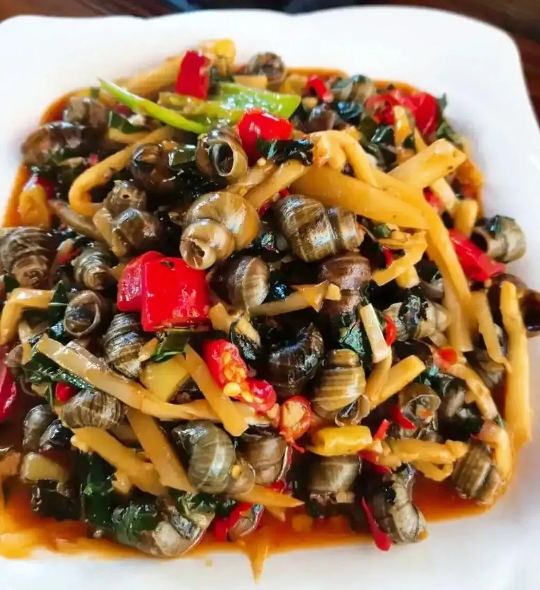位列第九的南宁炒螺(中山路田螺)是南宁夜市“翻台王”,中山路、建政路等夜市街炒螺摊覆盖率100%。单摊日均销量超300斤螺肉,以紫苏、酸笋、辣椒爆炒,螺肉吸满酸辣汤汁,鲜辣入味,是南宁人夜宵的灵魂伴侣。