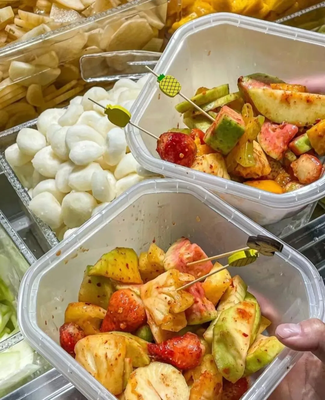 第六位的酸嘢于2023年列入广西区级非遗,南宁街头覆盖率超90%,酸品王等连锁品牌全国门店130+,单店日均销量超500斤,仅酸萝卜日销数千斤。芒果、萝卜、菠萝等食材蘸辣椒盐,酸甜脆辣四味交织,“万物皆可腌”,是南宁人解暑开胃的街头灵魂小吃。