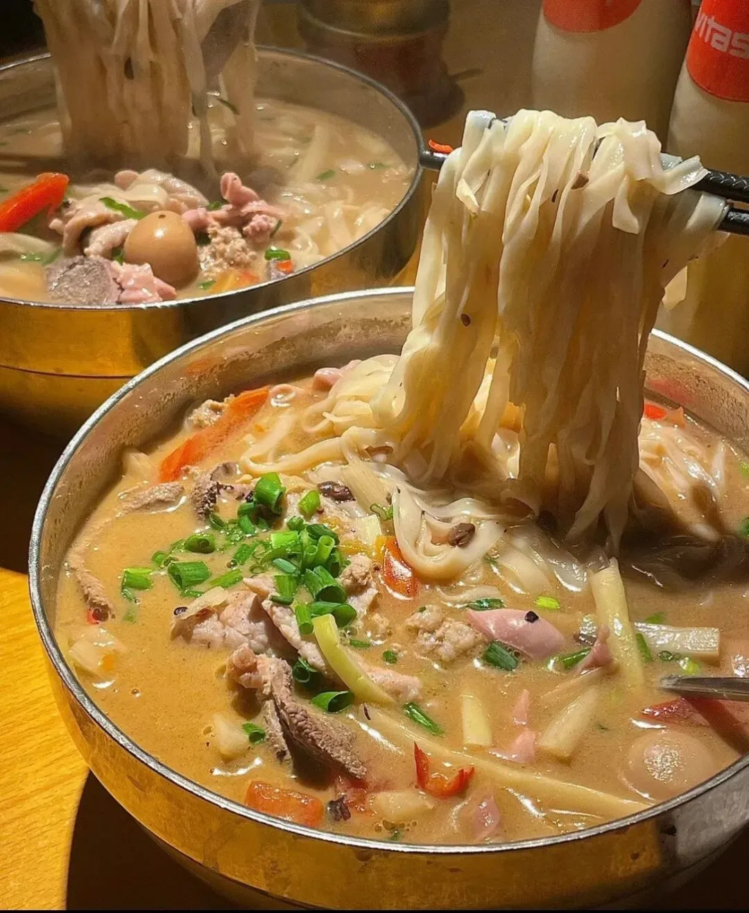 第七位的八仙粉是南宁传统汤粉代表,2025年南宁餐饮协会统计其早餐点单率28%,遍布全城粉店。它有猪瘦肉、猪肝、粉肠、鱿鱼等8种配料,汤底用老母鸡加筒骨熬制8小时,鲜味十足,是南宁人早餐的营养选择。