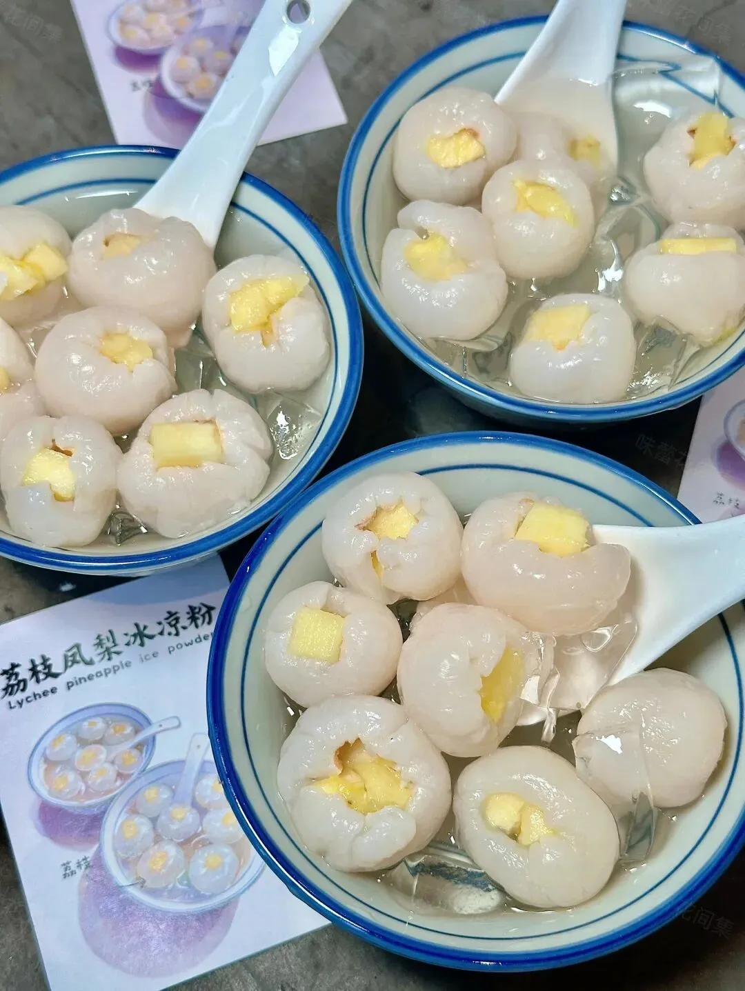 这一碗可以叫荔枝酿凤梨冰凉粉吧😋