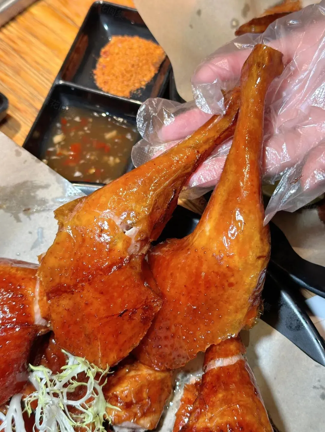 外皮烤得酥酥脆脆的大鸡腿,香到不行,一口甜一口咸,口感直接拉满,越吃越上头,真的太满足啦~
