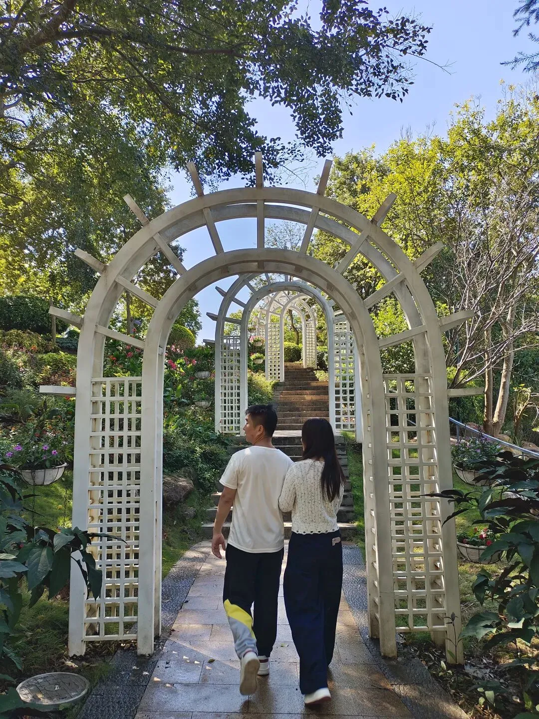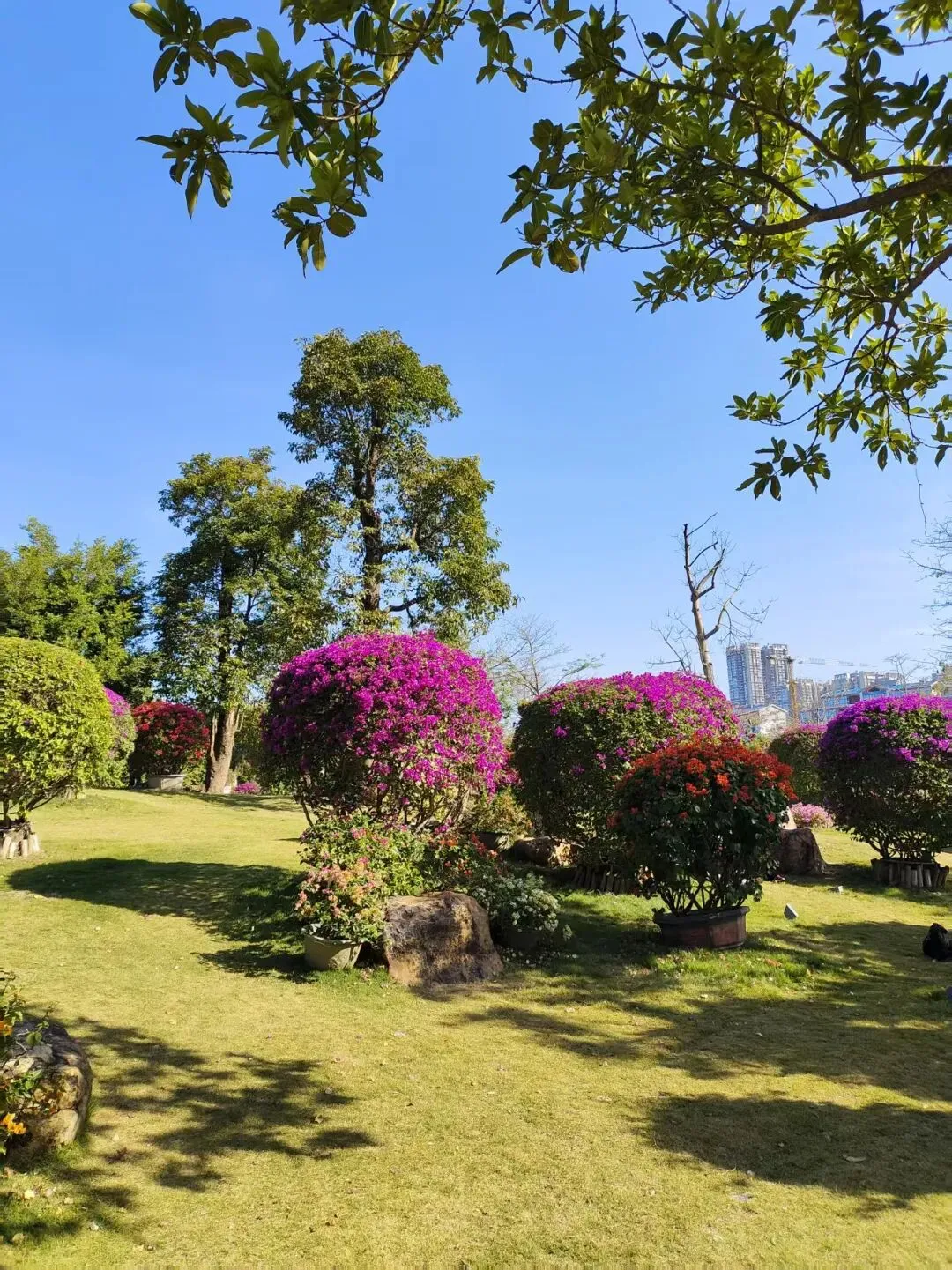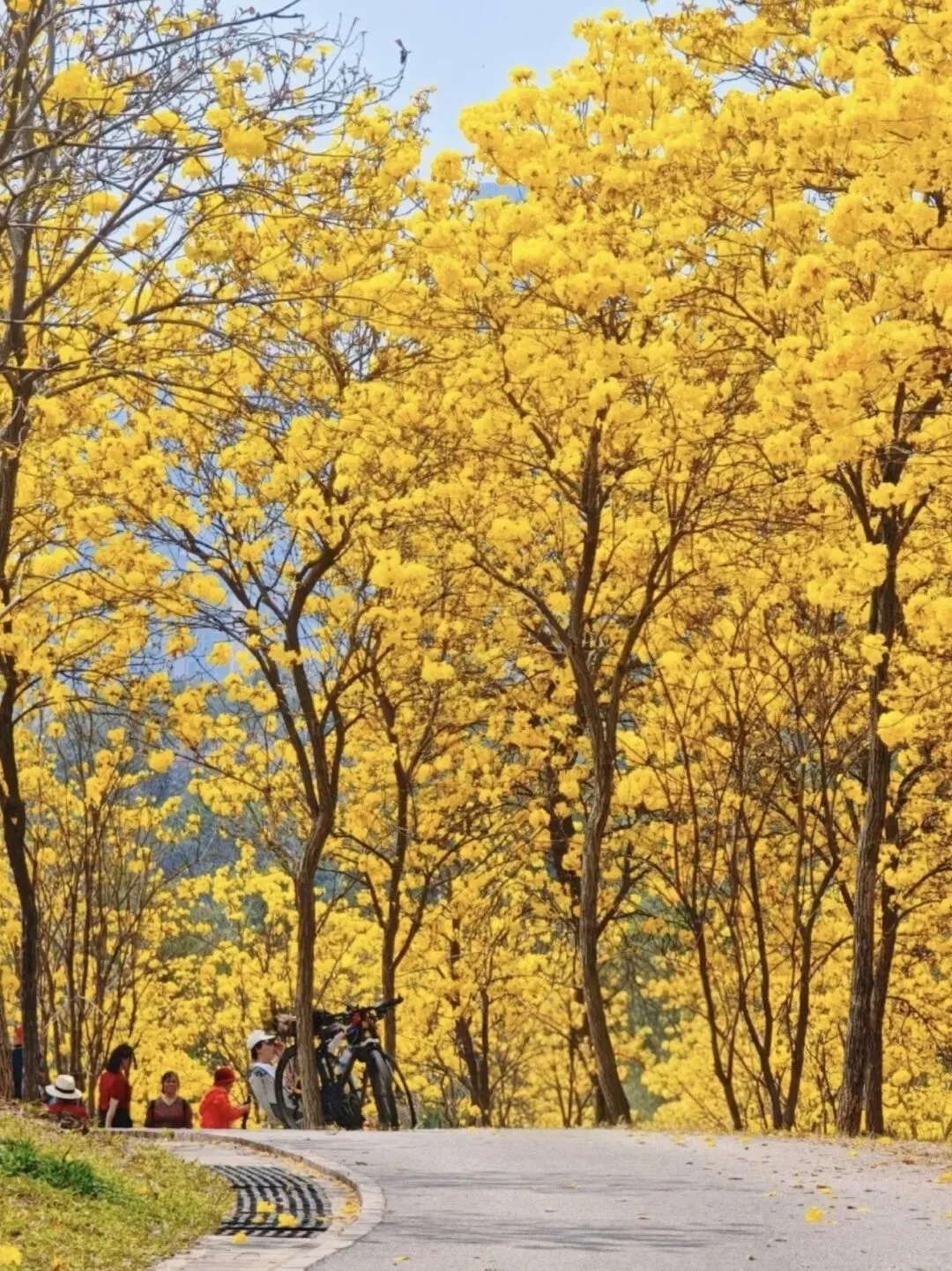 一日阳光正好,春和景明,骑着电车,直往青秀山东门而去。进得大门,沿途可见四季常艳之三角梅,嫣红似火,点缀于道旁,令人赏心悦目。若体力充沛者,可自东门信步而行,直抵黄花风铃谷;若欲求便捷,亦可乘园区小火车前往,东门至风铃谷约一点五公里。我喜徒步慢行,一路风光旖旎,景色宜人,令人目不暇接。