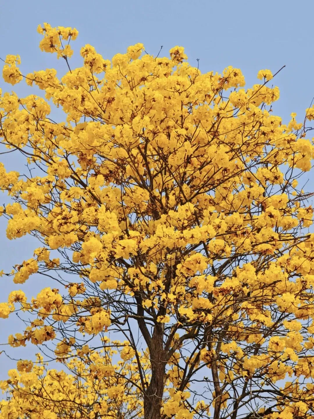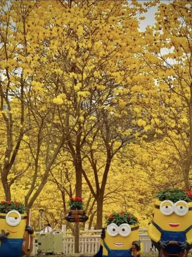 黄花风铃木,其开花之态别具一格。先花后叶,继而满树繁花,如金铃缀枝,璀璨夺目。其花语含感恩、感谢之意,亦象征希望与光明。虽然花期短暂,如白驹过隙,但它以不施粉黛,清丽出尘的风姿,给春天平添了最有诗意的色彩和神韵。也诚劝世人珍惜当下,莫负春光矣。