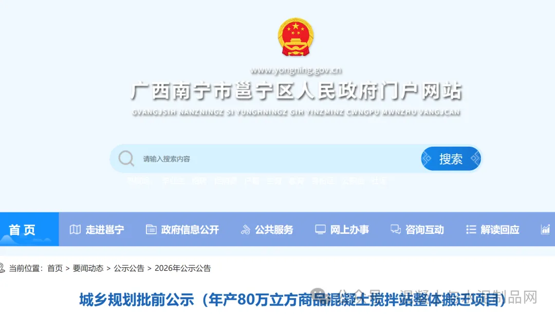 南宁80万立方商品混凝土搅拌站整体搬迁项目批前公示