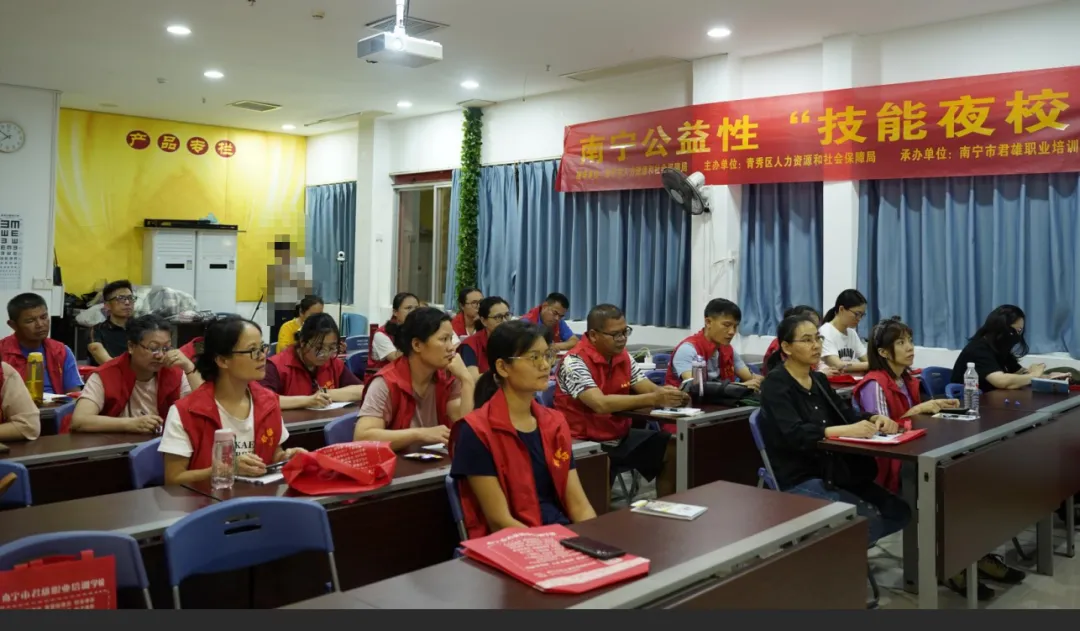 为提升养老服务水平,增强老年人日常突发状况下的急救处置能力,2026年4月13日晚 ,由南宁市人力资源和社会保障局指导、青秀区人力资源和社会保障局主办、南宁市君雄职业培训学校承办的 “公益性技能夜校——养老护理员:老年人日常急救训练技能培训”顺利举行。
