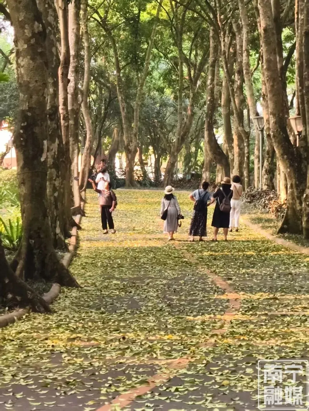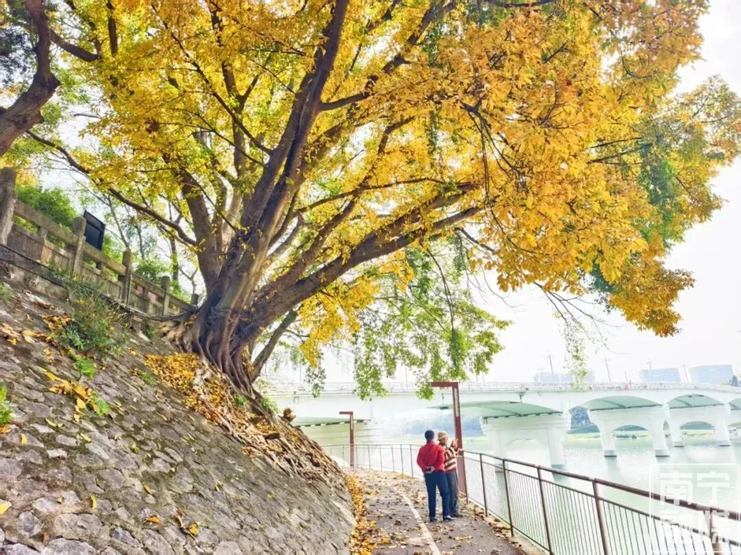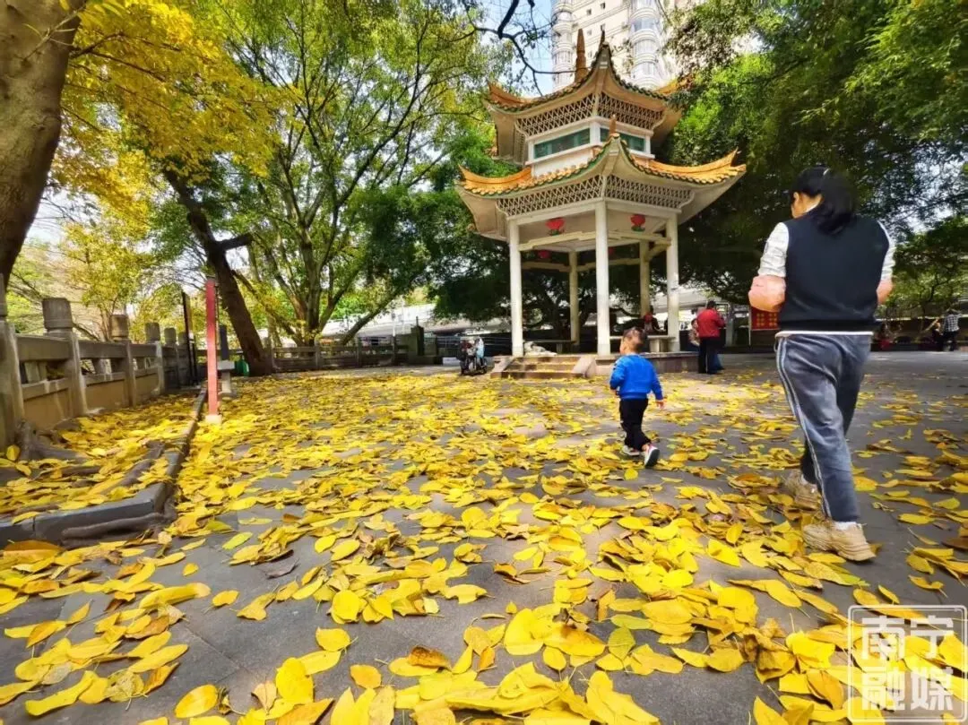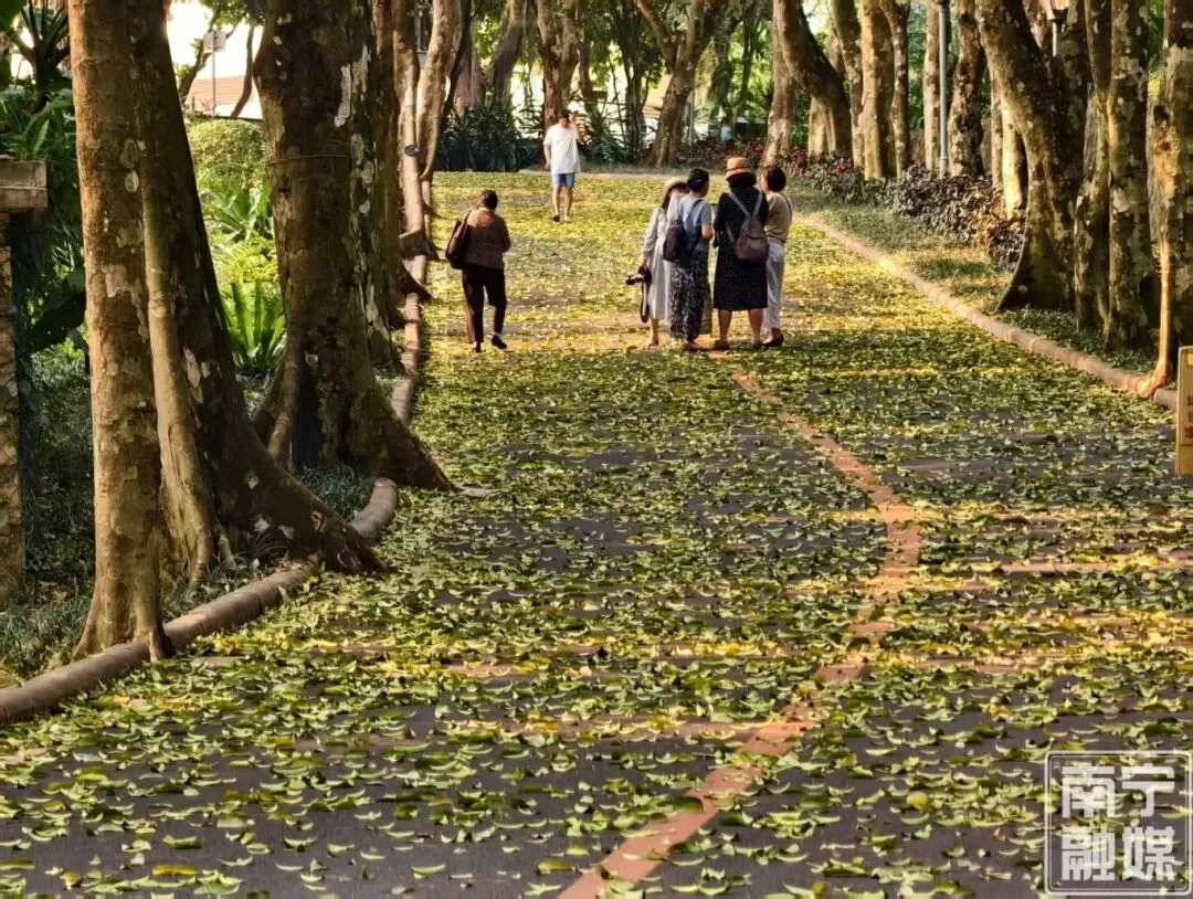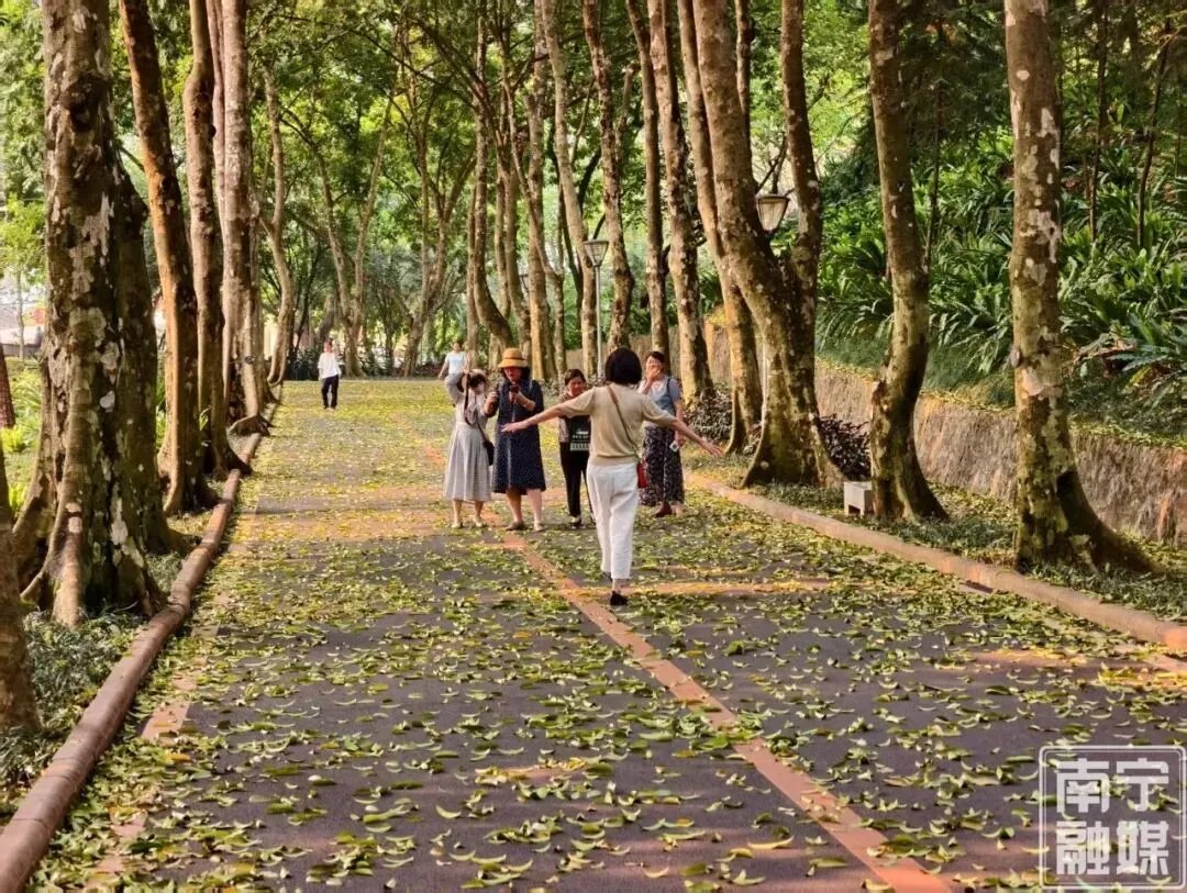 在这个草木葱茏的时节,踩在厚厚的落叶上,听着脚下“沙沙”的清脆声响,看着嫩绿的新芽与金黄的落叶同框,你会真切感受到南国春夏万物生长的生机勃勃。