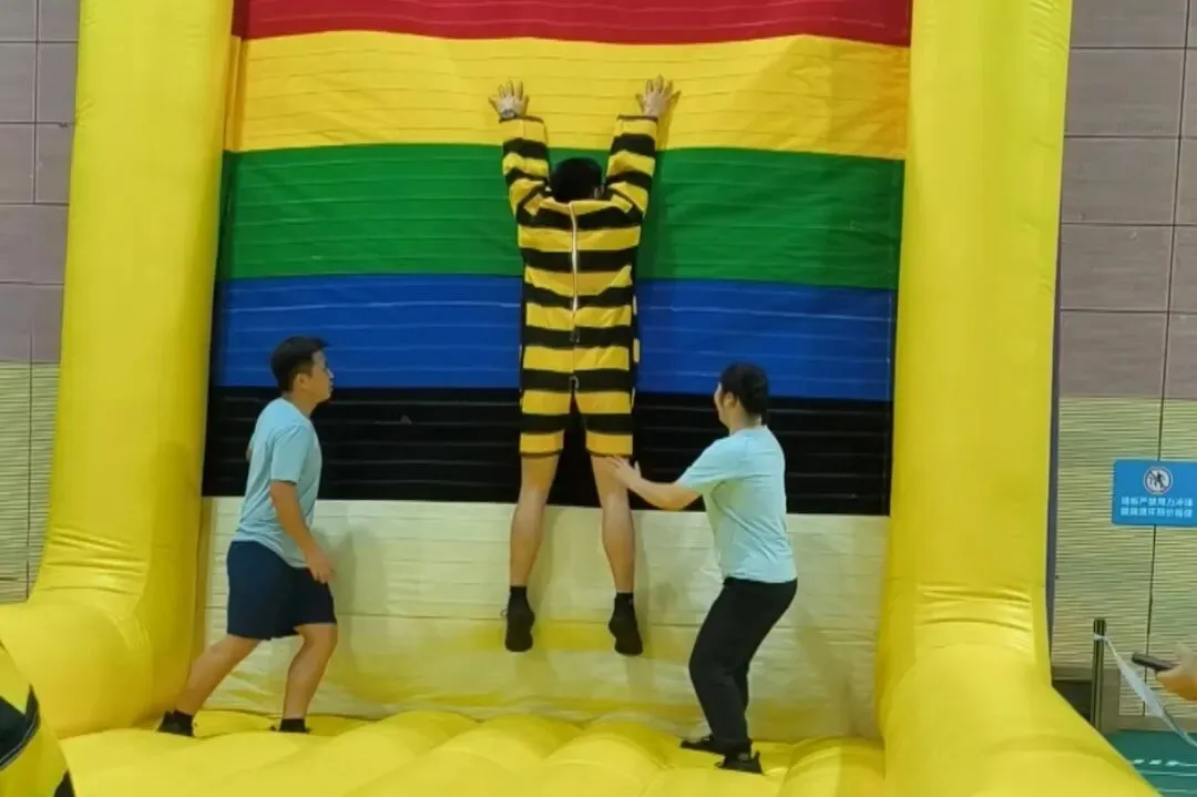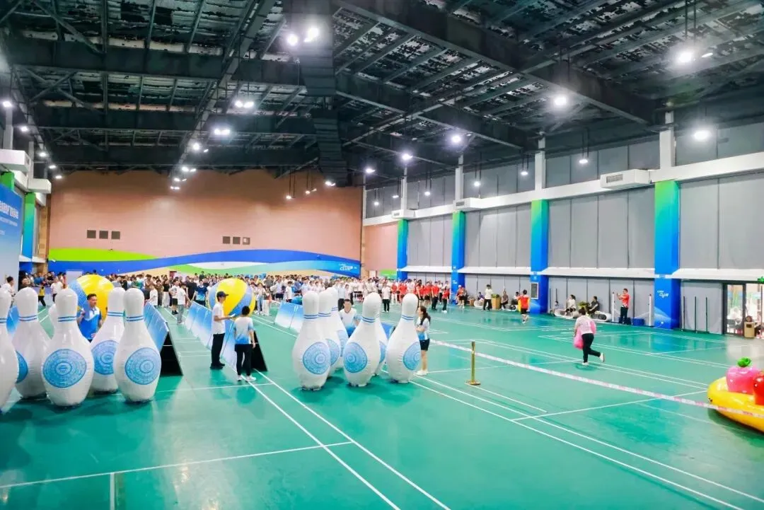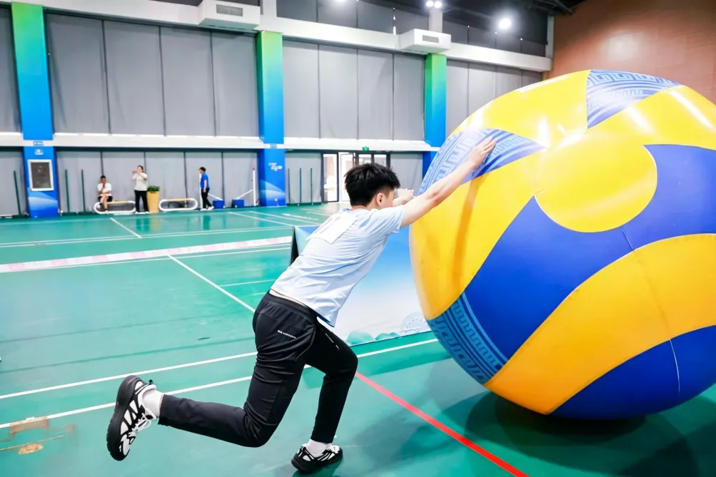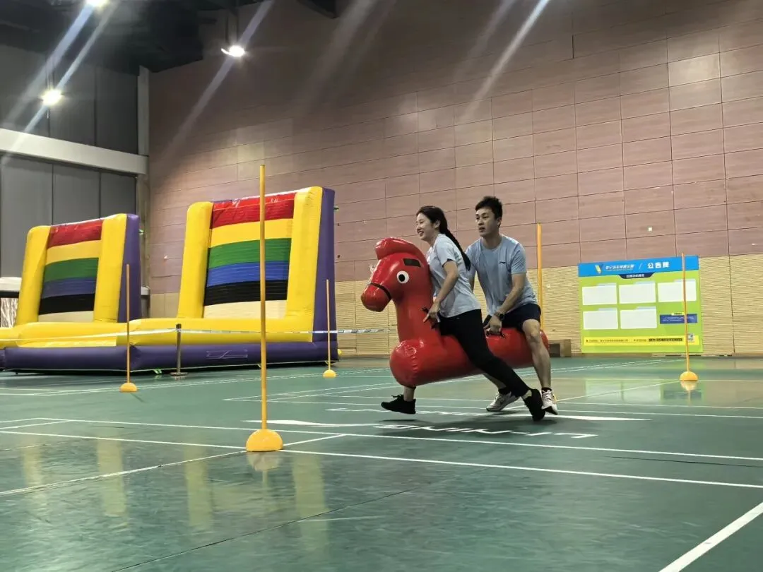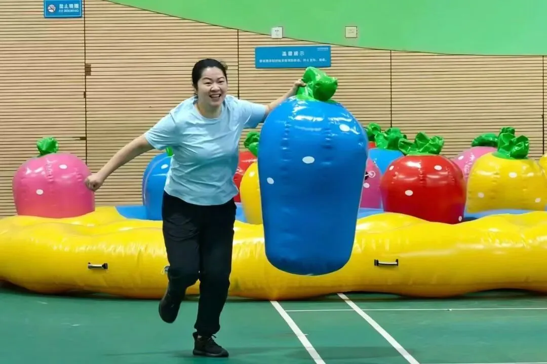 本次运动会设置勇攀高峰、一马当先、萝卜保卫战、超级保龄球、三关接力大闯关(跳绳+藤球+绣球)五大竞赛项目。赛场上,参赛队员们精神抖擞、斗志昂扬,全力以赴、奋勇拼搏。