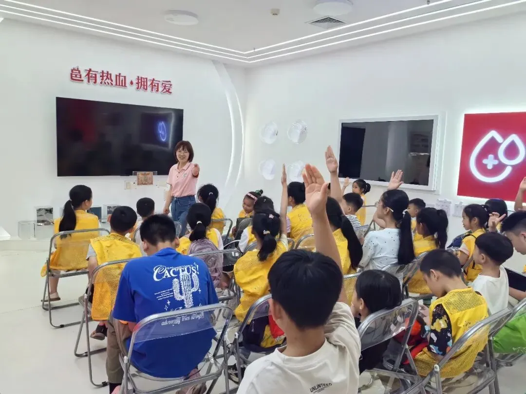 在专业讲解员引导下,孩子们首先参观“血液的奥秘”智慧科普馆。讲解员用通俗易懂的语言讲解血液的组成与功能,无偿献血的流程、注意事项及公益意义,帮助孩子们打破认知误区,树立健康理念与奉献意识。